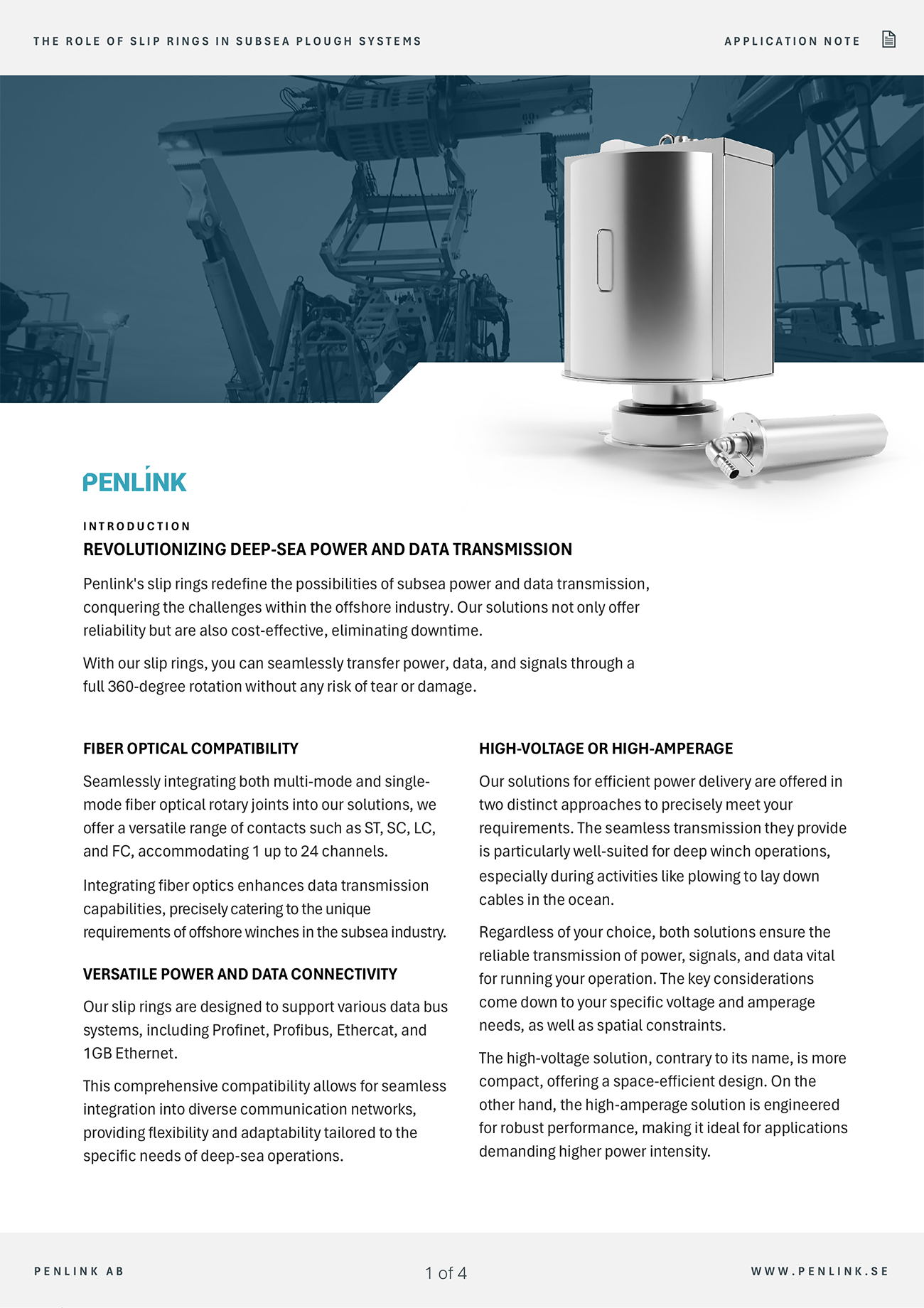 Penlink’s slip rings redefine the possibilities of subsea power and data transmission, conquering the challenges within the offshore industry.